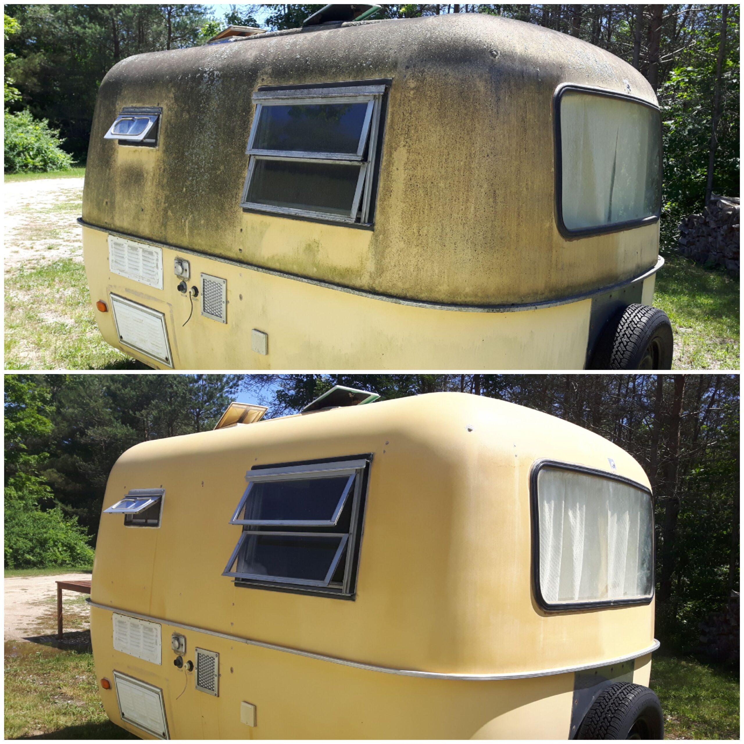 Next to your home, an RV or trailer can be your 2nd largest investment. Road grime, grease, tree sap, bird droppings, mold, algae and fire pit soot can all lead to that black gritty look and feel that’s left on your trailer. Keep your home away from home looking its best with an annual or bi-annual washing. Our RV and trailer washes include pure water window cleaning.